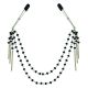 Zgarda superba din piele vegana care dispune de lanturi cu clips pentru sfarcuri pentru o stimulare uimitoare. Zgarda moale din PVC dispune de un strat dublu de material, este lucrata manual si se inchide printr-o catarama. Cele doua clipsuri pentru sfarcuri au atasamente pentru a oferi o senzatie cat mai confortabila si pentru a disipa tensiunea. Clipsurile sunt atasate de lanturi cu o lungime de 10,5 inch (26 cm). Perfecte pentru stimularea sfarcurilor sau a altor zone sensibile. Fara nichel.